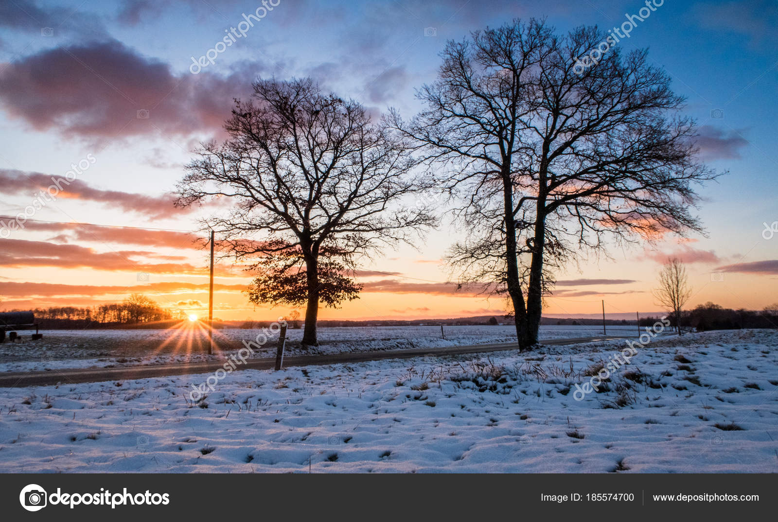 French Countryside Wallpaper Two Trees Side Road Dunring French
