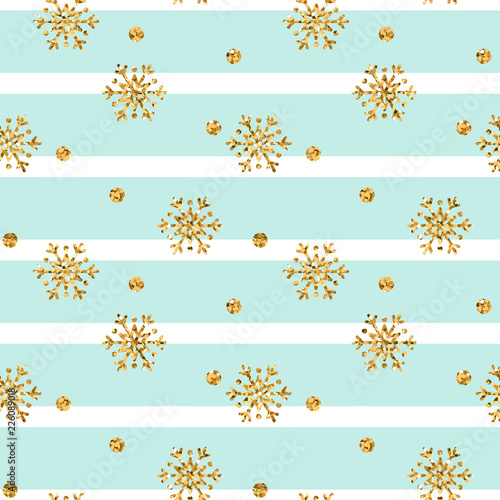 Christmas Gold Snowflake Seamless Pattern Golden Glitter